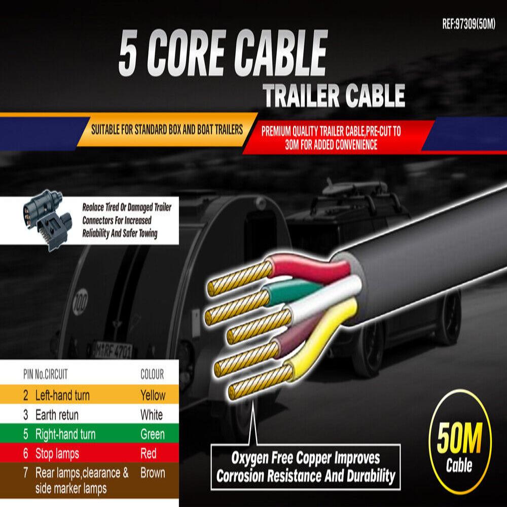 Sedy 30M X 5 Core Wire Cable Trailer Automotive Boat Caravan Truck Coil V90 Pvc Trailer Parts