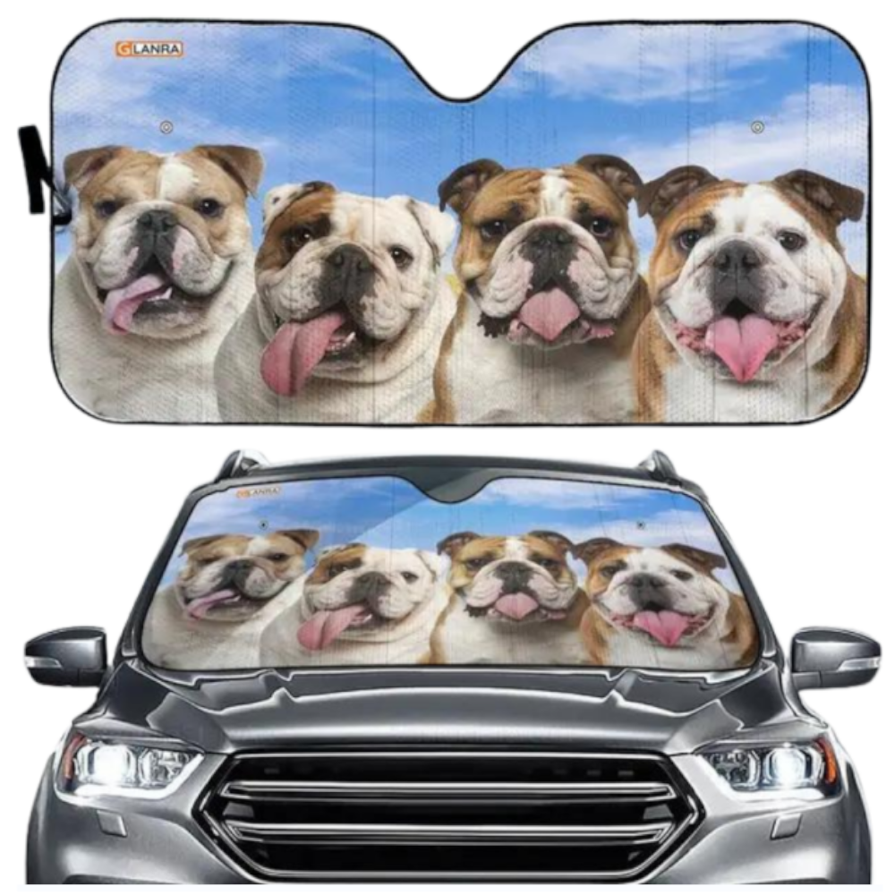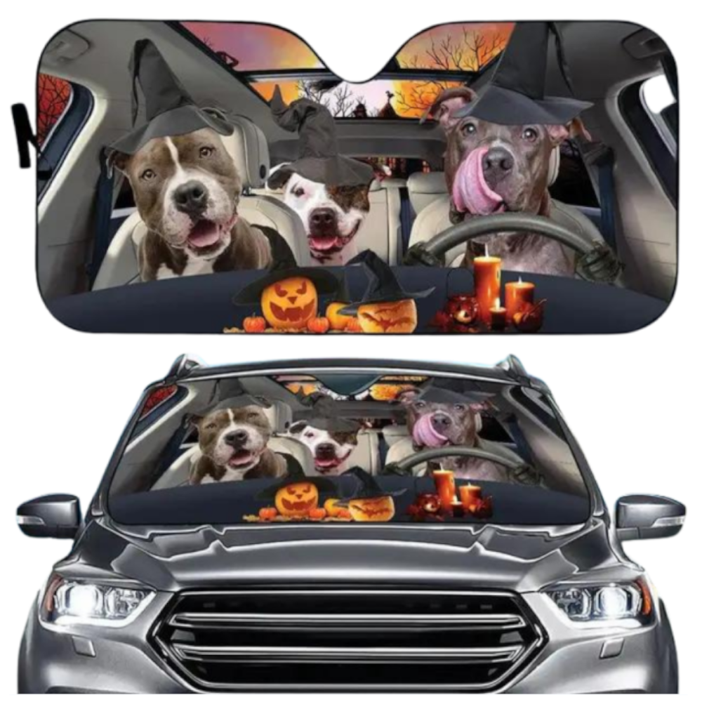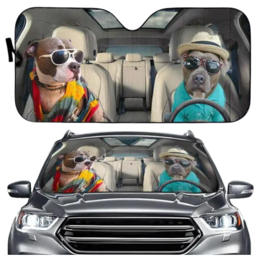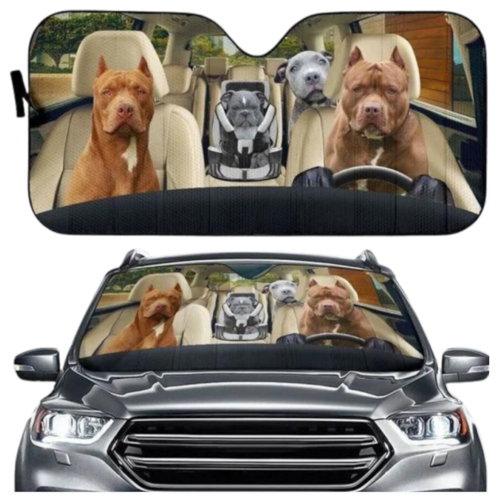Pitbull Dog Family Car Sunshade Funny Gift For Him Dad Vehicle Accessories Sun Visors