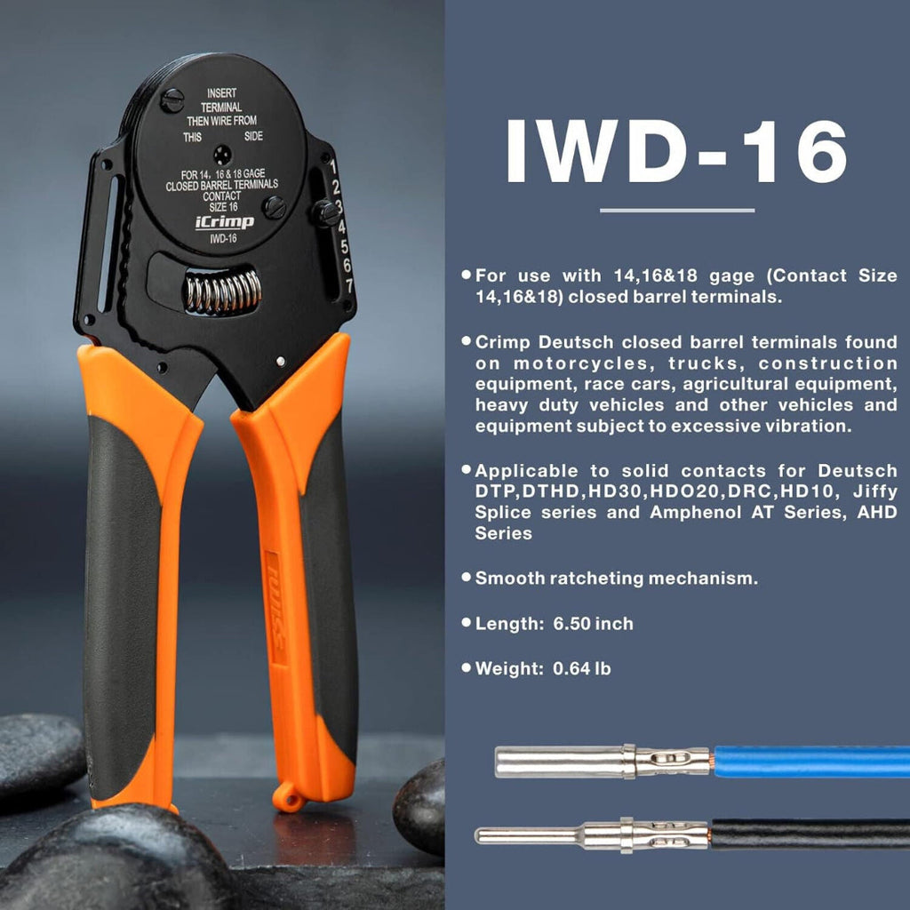 Four Way Indents Eight Impressions Ratchet Crimper For Closed Barrel Terminals From Deutsch Amphenol. Upgraded Internal Structure Ensures The Stability And Power Equality On The Pins. High Quality Ensures Durability And Long-Term Wearability And The Crimping Force Improves Adaptability. Suits Deutsch Closed Barrel Terminals Found On Motorcycles Trucks Construction Equipment Race Cars Agricultural Equipment Heavy-Duty Vehicles And Other Vehicles And Equipment Subject To Excessive Vibration. Applicable To All Solid Contacts For Deutsch Dtp Dthd Hd30 Hdp20 Drc Hd10 Drb Jiffy Splice Series And Amphenol Atp Ahd Series.