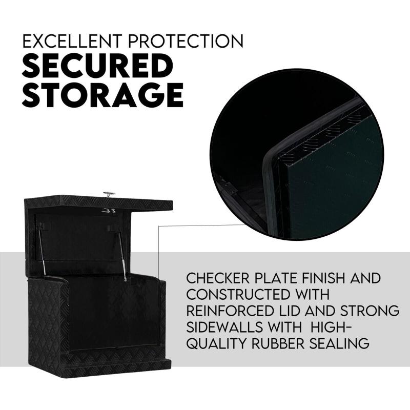 This Tool Box Has A Checker Plate Finish And Constructed With Reinforced Lid And Strong Sidewalls. The High-Quality Rubber Sealing And Fully Welded Seams Also Helps To Keep Your Precious Equipment And Tools Clean And Dry From The Weather Elements. Better Still The Open-Top Design Enables You To Access Your Tools And Supplies With Minimum Hassle.