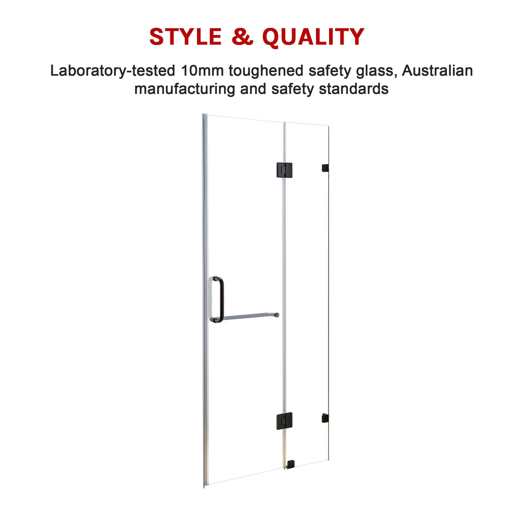 Constructed With 10Mm Thick Tempered Glass That Meets Australian Standard As/Nzs 2208:1996 This Unit Is Built To Last. It Features A Sturdy Door Affixed With 2 Hinges And 3 Clamps All In A Bold Black Finish For A Modern High-Contrast Look. A Matching Round Handle Completes The Minimalist Aesthetic.