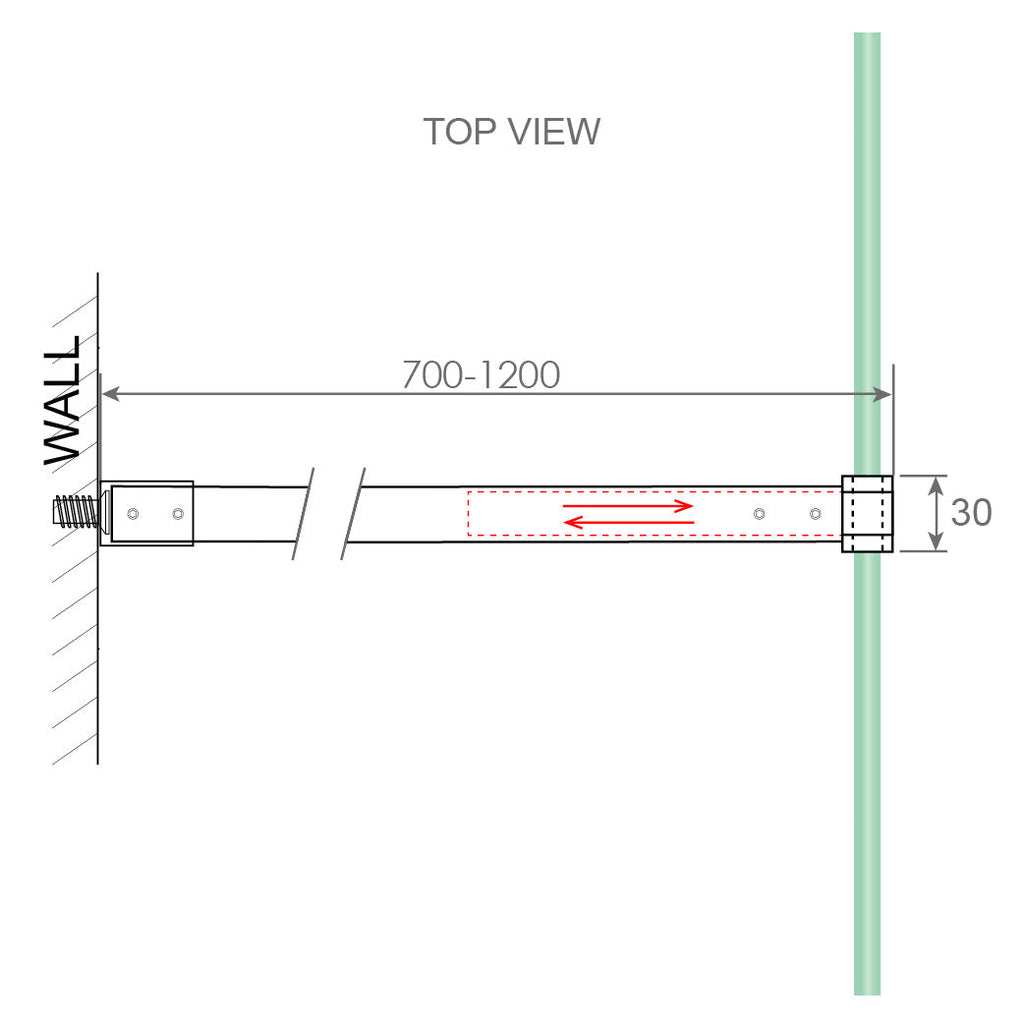 • Fixes Horizontally From Wall To Top Of Glass Panel