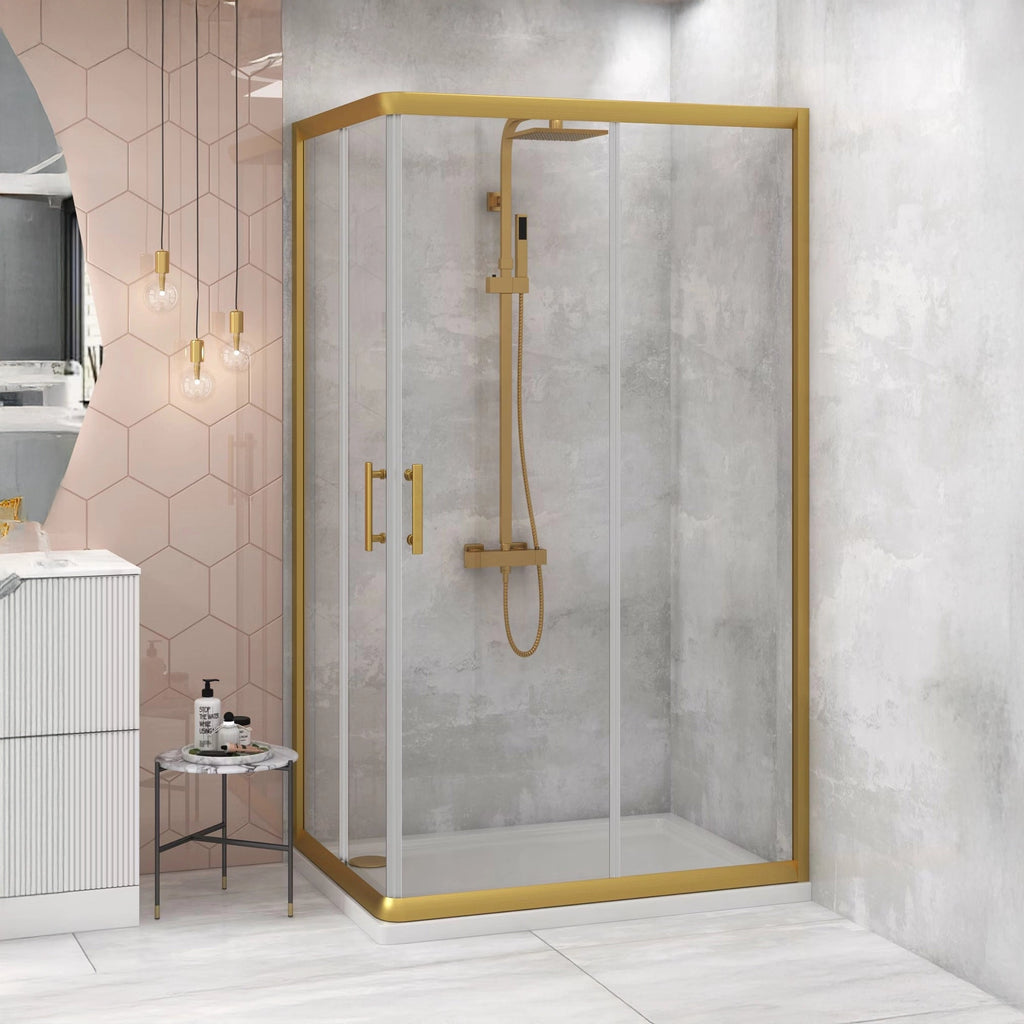 900X1200mm Double Sliding Door Glass Shower Screen In Gold Shower Enclosures