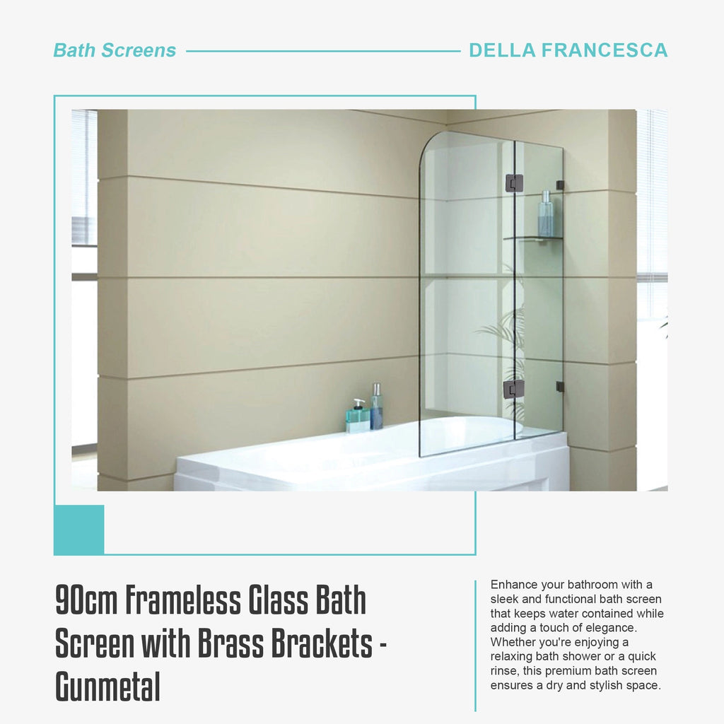 90Cm Frameless Glass Bath Screen With Brass Brackets Gunmetal Shower Enclosures