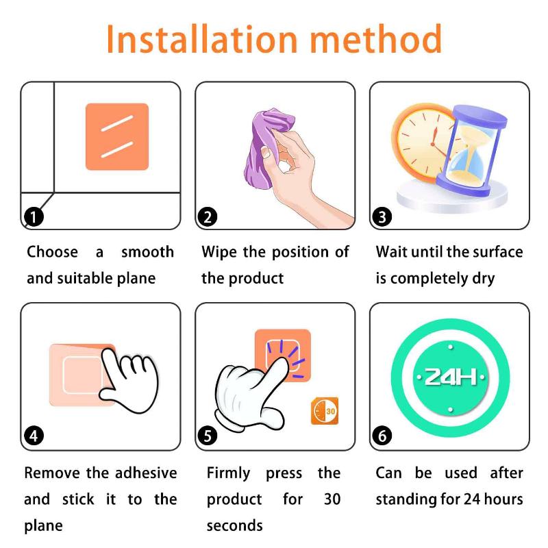 No Need To Drill And No Need To Damage The Wall Stick Wherever You Need. Smooth Mute In Swinging With 180 Swivel Design. Notes: When Installation Please Make Sure The Wall Is Smooth Clean And Dry.