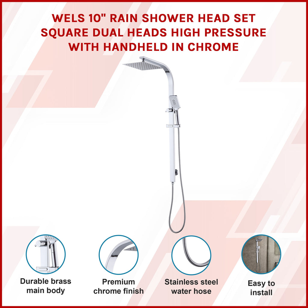 Wels 10" Rain Shower Head Set Square Dual Heads High Pressure With Handheld In Chrome Shower Heads & Combos