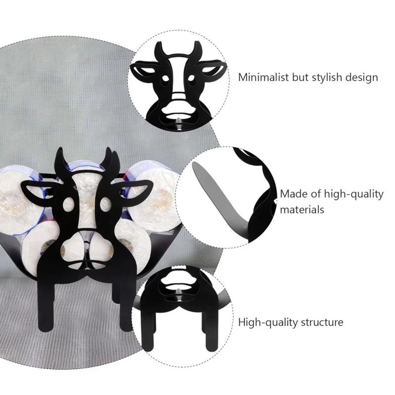 • This Black Powder-Coated Metal Cow Shaped Toilet Roll Holder Happily Hangs Out In Your Bathroom Completely Free Standing And Letting You Move Him Anywhere In Your Home If You Don't Want To Use Him For Keeping Your Loo Roll.