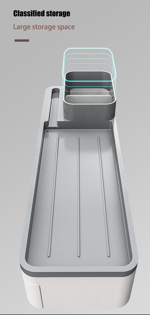 A Clever Storage Solution For Your Toothbrushes And Essential Toiletries. Featuring Great Storage Solutions Including Toothbrush Holders Phone Holder And Magnetic Cups Design Which Functions As A Cover For Anti-Dust And Fast Water Draining.