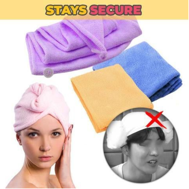 100%superfine composite fiber materialwith a button to secure your bath towels. Your hair will not slip when you take a bath. Extremely easy to use!