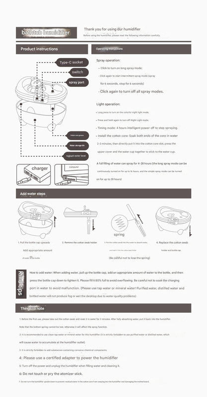 Adorable Bathtub Humidifier With Colorful Night Light - Usb-C 340Ml Auto Shut-Off
