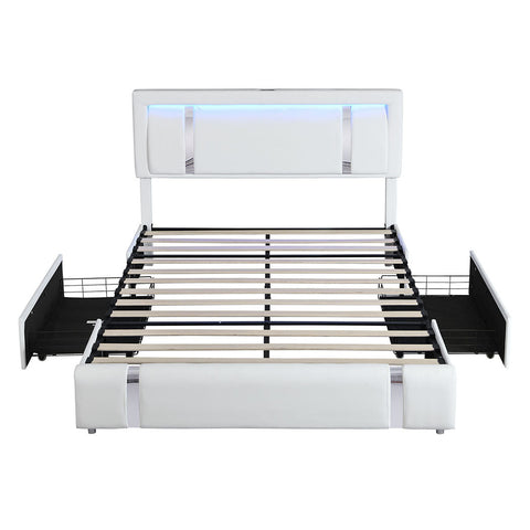 Artiss Double Bed Frame Led Storage Headboard With Charging Station Black Double Bed Frames