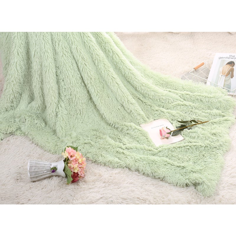 130X160cm Super Soft Long Coral Fleece Flurry Throw Blanket Pistachio Green Blankets
