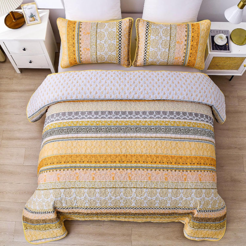 • Elegant Cozy Design: Transform your bedroom into a stylish cozy retreat with this 3-piece quilt bedspread set. Its reversible design offers versatility allowing you to switch up your bedroom decor with ease.