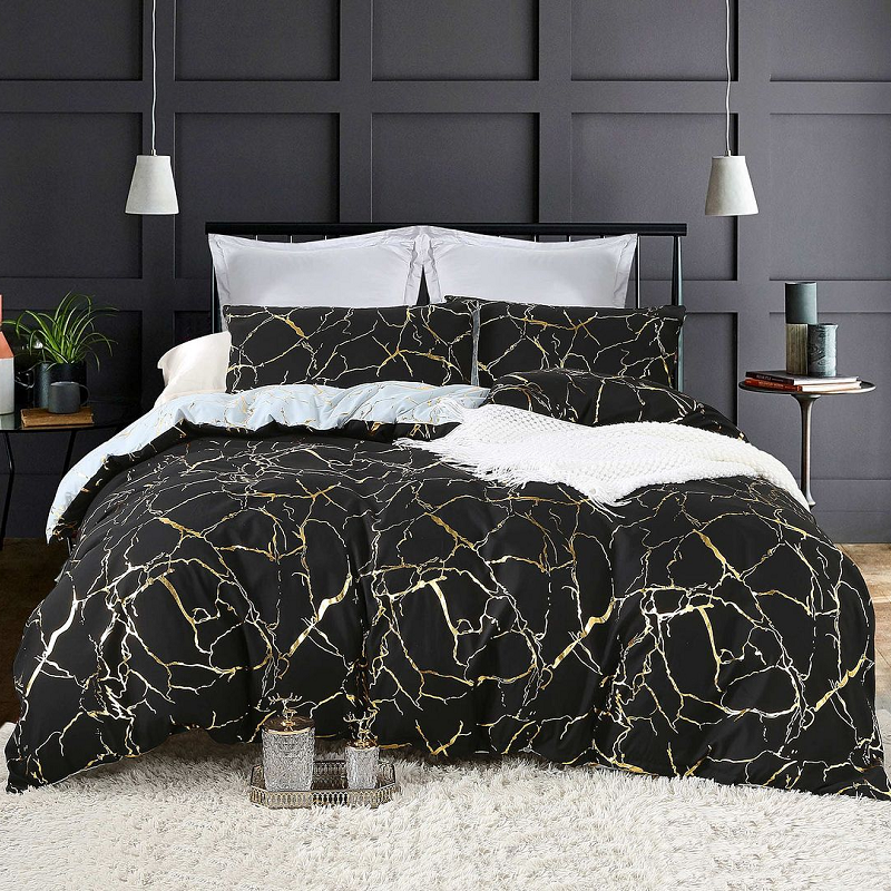 Fabric Fantastic Reversible Design Super King Size Black Duvet Quilt Cover Set Quilt Covers