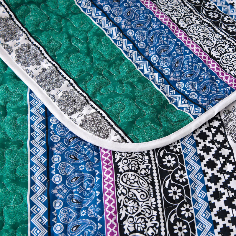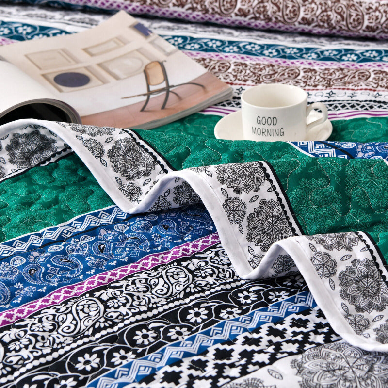 Romantic Blush Green Grey 3 Pc Bedspread & Pillow Cover Set Quilt Covers