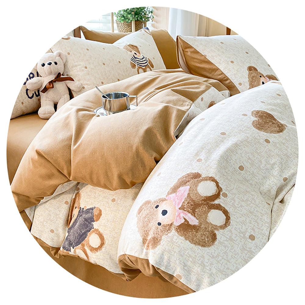 Thick Brushed Cotton 4 Piece Bed Sheet Set (1.5M Bed) Fits 200X230cm Duvet Quilt Covers