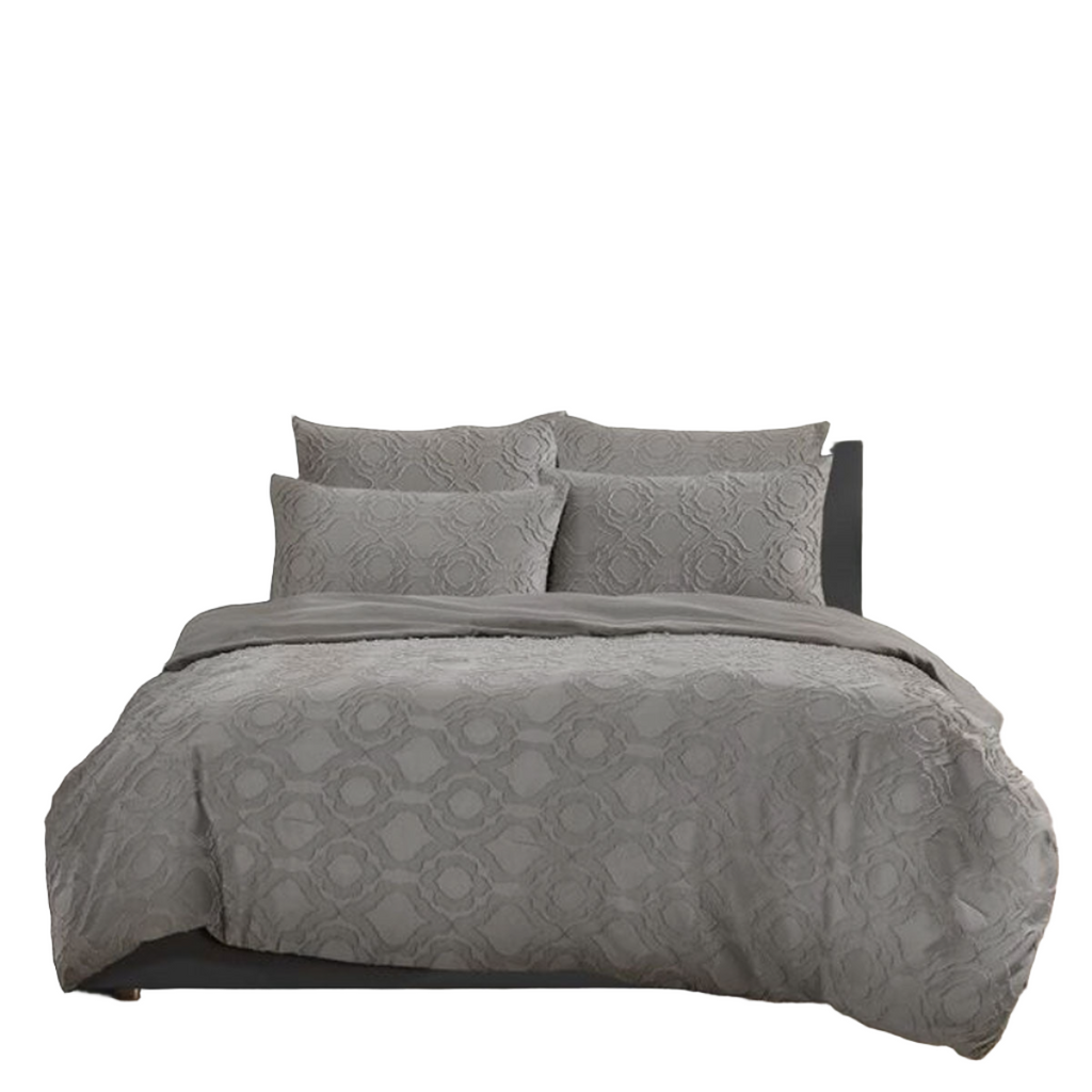 This 5 Pce Comforter Set Millicent Storm Grey By Ardor Is A Soothing Design That Will Create A Calming Vibe In Your Bedroom. Millicent's Storm Grey Front Displays A Tufted Pattern That Softly Gestures Inspiration Form Floral Tiles With A Plain Dyed Reverse. It Is Made From Quality Polyester Fabric With Approx 200Gsm Polyester Fill That Will Make You Warm And Comfy In Your Sleep.
