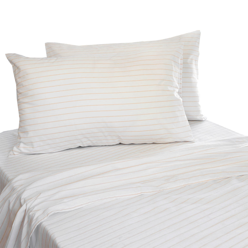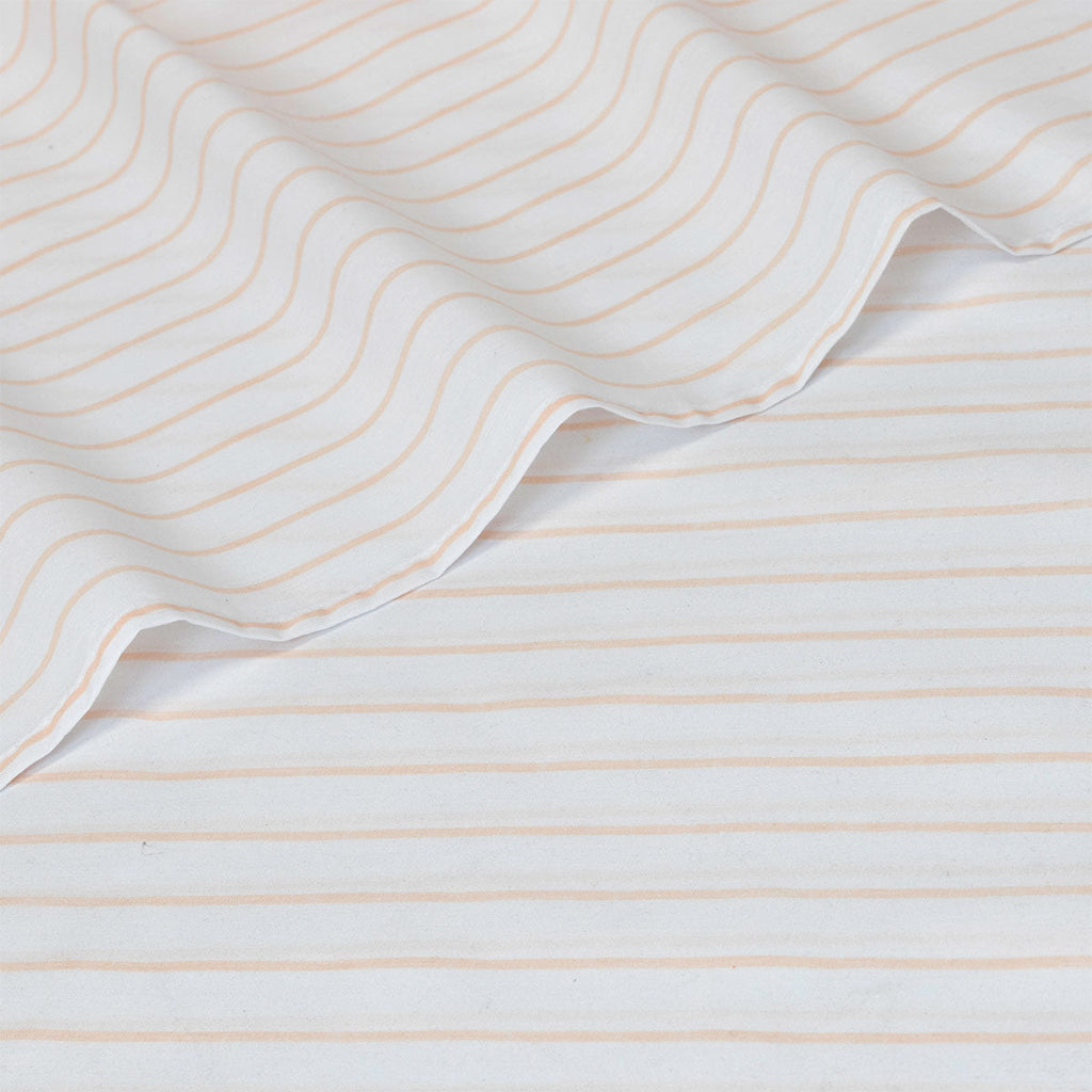 This Striped Polyester Cotton Sheet Set Watermelon By Jelly Bean Kids is a refreshing take on classic sheets bringing a playful watermelon color together with timeless stripes printed in white and coral tones. It is made from soft touch and quality polyester cotton blend fabric.