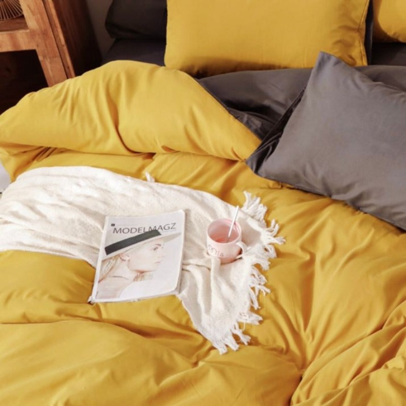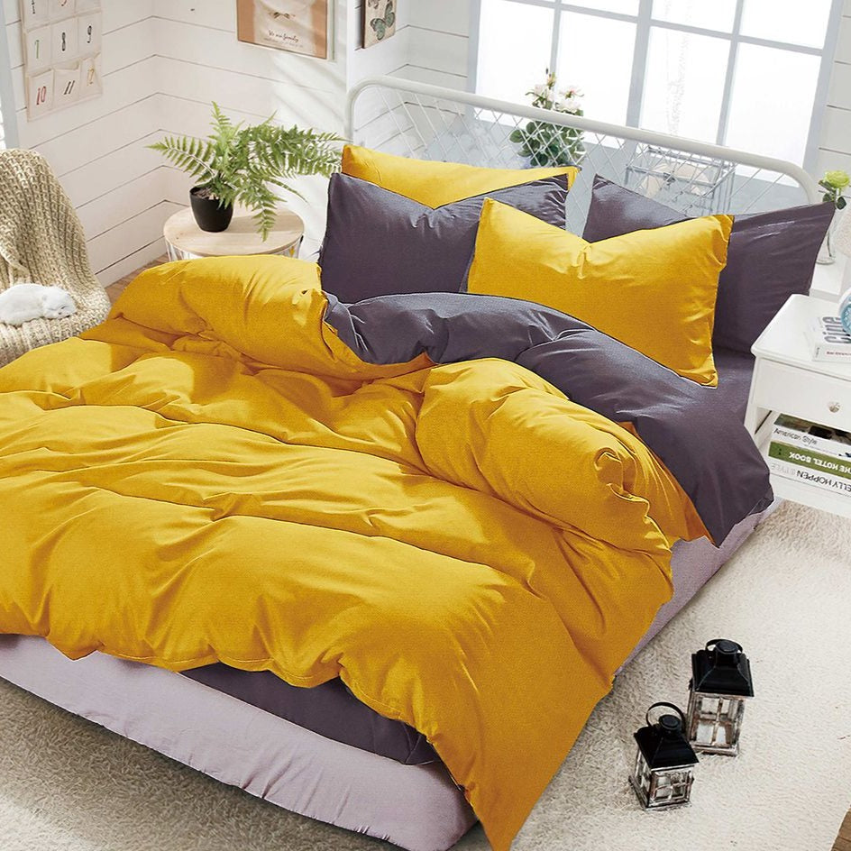 Fabric Fantastic 1000Tc Reversible Queen Size Yellow And Grey Duvet Quilt Cover Set Quilt Covers