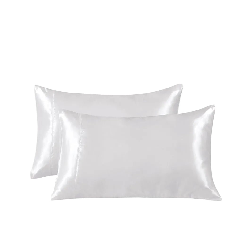 Satin Pillowcases Silky Soft Polyester With Zipper Closure White 48Cm X 73Cm (Twin Pack) Pillow Cases