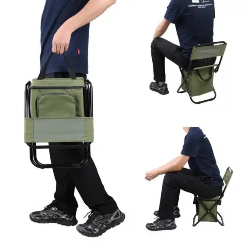Elosung Green 3 In 1 Folding Camping Chair With Storage Bag Backrest Insulated Cooler For Outdoor Fishing Hiking Picnics Camping Chairs