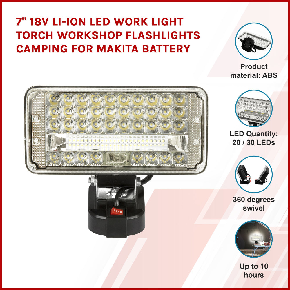 7" 18V Li Ion Led Work Light Torch Workshop Camping For Makita Battery Flashlights