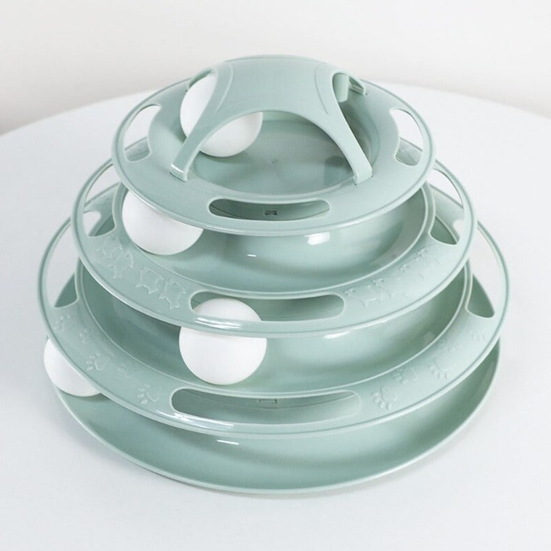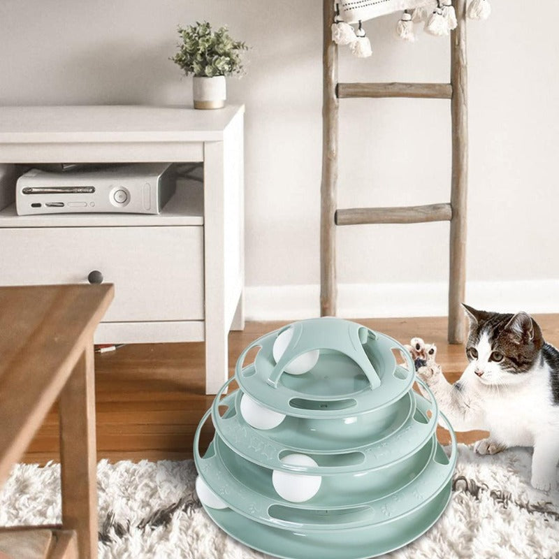 - AThis Kitty tower comes in 3 levels and comes with 3 balls making it the perfect cat toy to help your cat exercise and have personal fun for mental and physical stimulation makes good weight control and prevents pet depression when you are busy or away.A