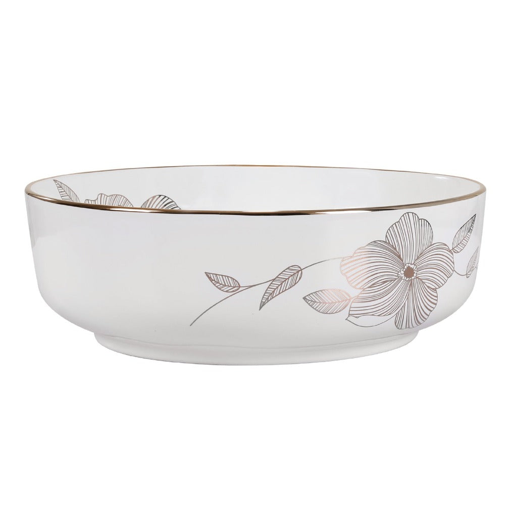 Upgrade Your Bathroom With Our Elegant Vanity Basin. Featuring A Modern Gold Streamlined Design This Basin Comes With A Flower-Patterned High-Gloss Finish That Enhances The Look Of Any Bathroom. The Ceramic Basin Is Anti-Scratch Leak-Proof And Odourless Making It Practical And Easy To Maintain. With Heat-Resistant Wear-Resistant Crack-Resistant And Fade-Resistant Properties It Offers A Durable And Smooth Surface That Can Withstand Regular Use. The Edges Are Smooth And Safe And The Product Comes With Easy Installation Instructions. This Vanity Basin Is The Perfect Addition To Any Bathroom.