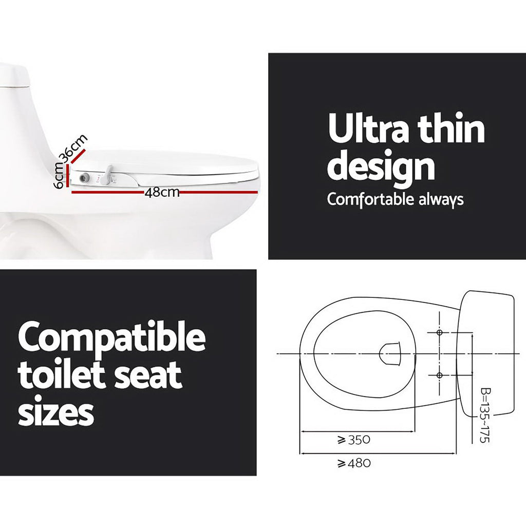 Maintain Superior Personal Hygiene With The Cefito Non-Electric Bidet. Designed For Convenience And Safety This Bidet Easily Fits Any Australian Standard Toilet Seat With Its O-Shape Design. With Self-Cleaning Nozzles And Dual Washing Functions For Both Buttocks And Feminine Use It Ensures A Hygienic And Refreshing Experience Every Time. Installation Is Simple With Supplied Fittings—No Plumber Needed!