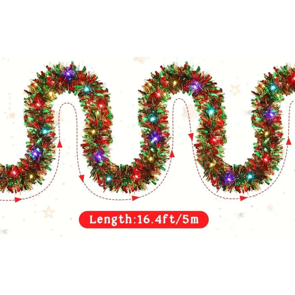 Christmas Tinsel Garland Metallic Shiny With Led Lights