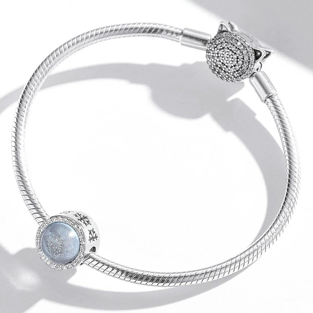 1 X 925 Sterling Silver Christmas Night Snow Scene Beads For Diy Bracelet Or Necklace<