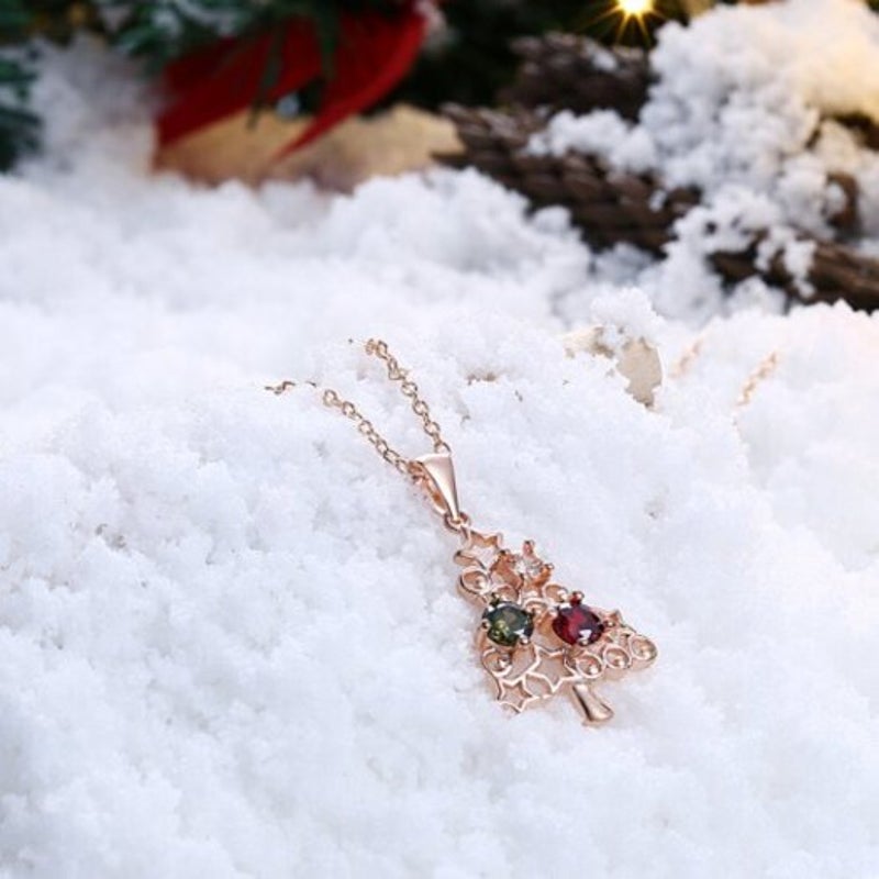 Veile Studios Zircon Christmas Tree Star Colorful Zirconium Necklace Rose Gold Necklaces & Pendants