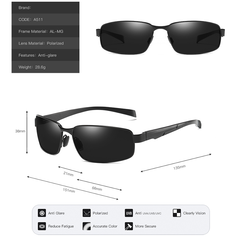 Men's Driving Polarized Rectangular Square Sunglasses Metal Frame High Quality Solid Color Lenses Providing Great Clarity Of Vision Comfort And Protection.User For Daily Life Party Driving Sunglasses And All Active Outdoor Lifestyles!With An Eye-Catching Full-Rim Design But They Don't Hurt Your Nasal Bridge Or Squeeze Your Head. The Soft Silicone Pads Always Keep The Glasses From Sliding And Most Importantly Ultra-Lightweight Design Provides All-Day-Long Wearable Comfort For You