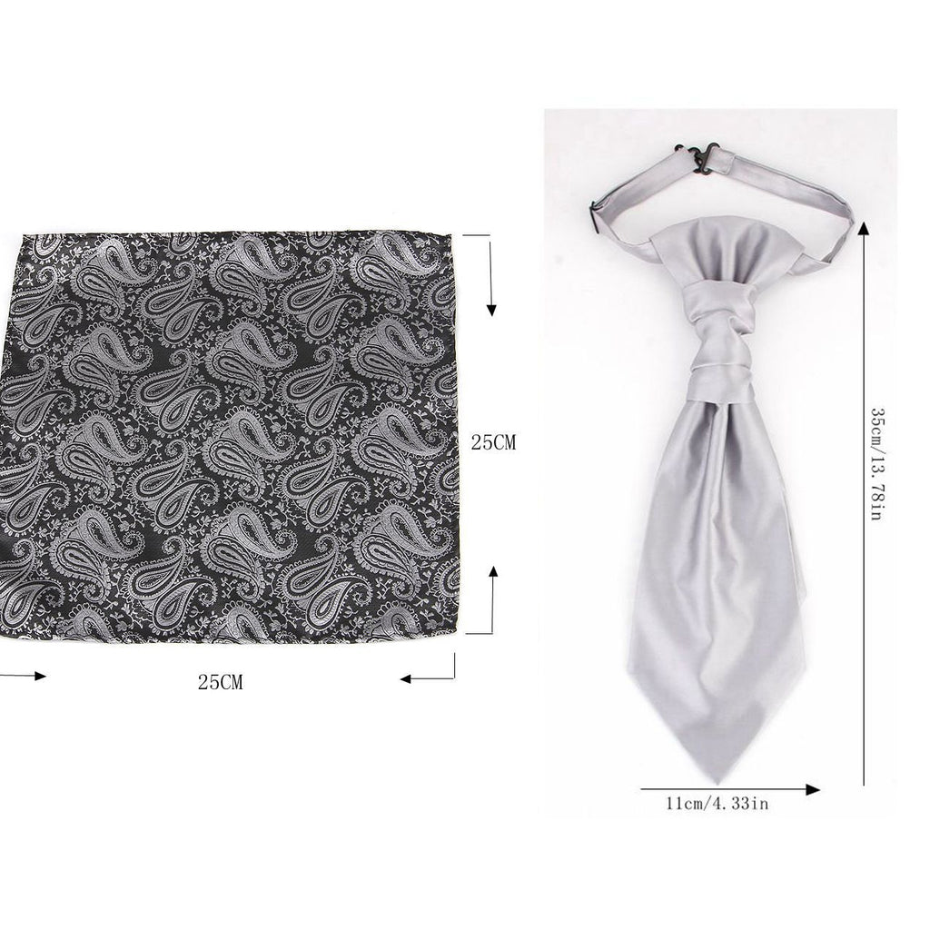 Men's Formal Paisley Ascot Cravat & Pocket Square Set Adjustable Necktie Weddings (Dark Gray Pattern) Ties