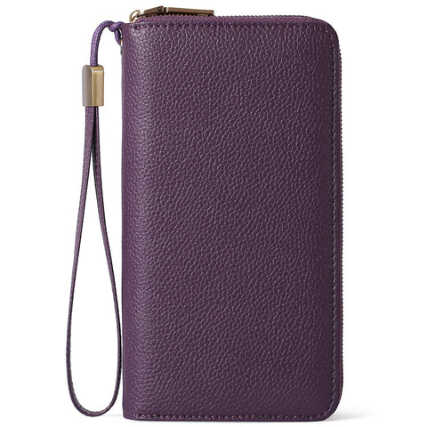 Genuine Leather Rfid Blocking Accordion Card Holder & Coin Purse Large Capacity Zip Wallet(Purple) Wallets