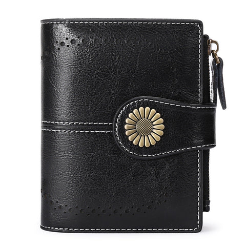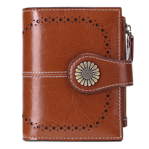 Women Leather Rfid Blocking Coin Purse Compact Design Brown Wallets