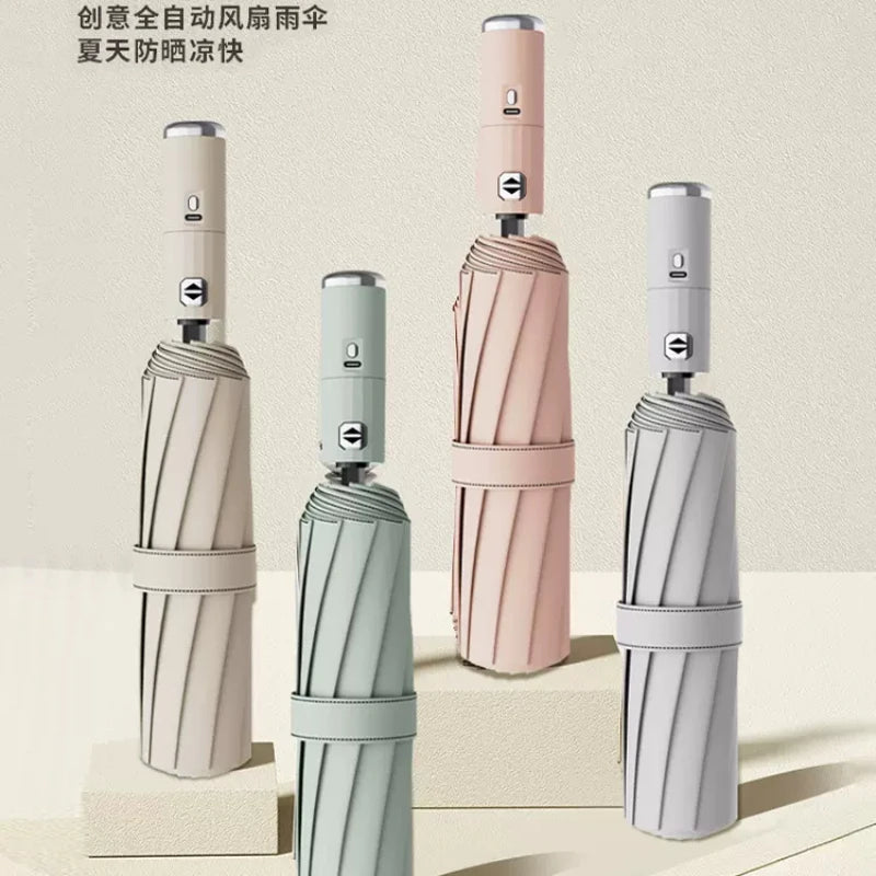 Come With Fan Umbrella Ten Bones Automatic Folding Sunblock Shade Double Cooling Rain And Sunshine Umbrellas