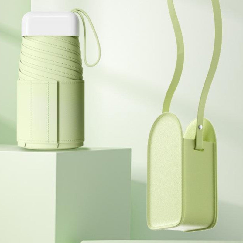 Mini Pocket Umbrella With Matching Crossbody Bag Uv Protection 6 Rib Windproof Design(Green) Umbrellas
