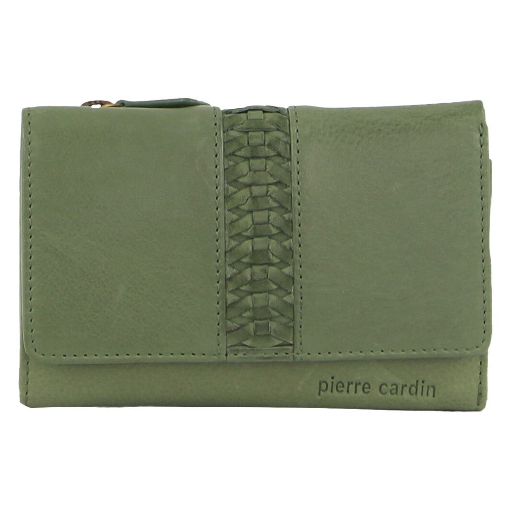 Pierre Cardin Leather Ladies Woven Design Tri Fold Wallet In Leaf Green Wallets