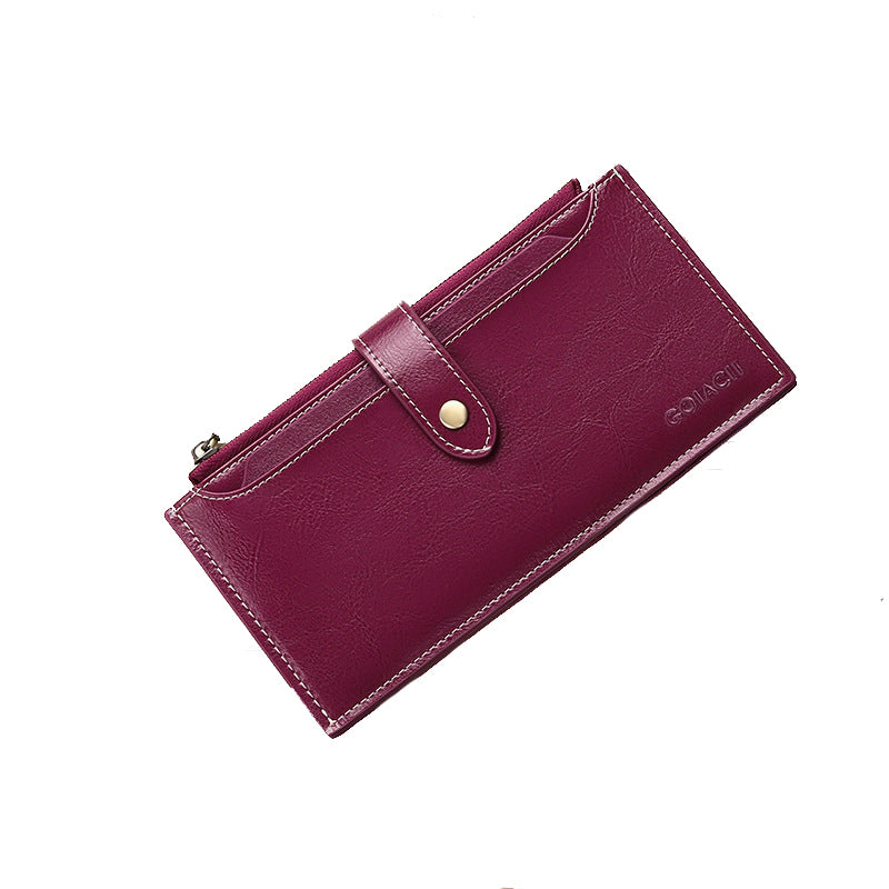 Wine Red Large Capacity Women's Leather Wallet Rfid Blocking Card Holder Wallets