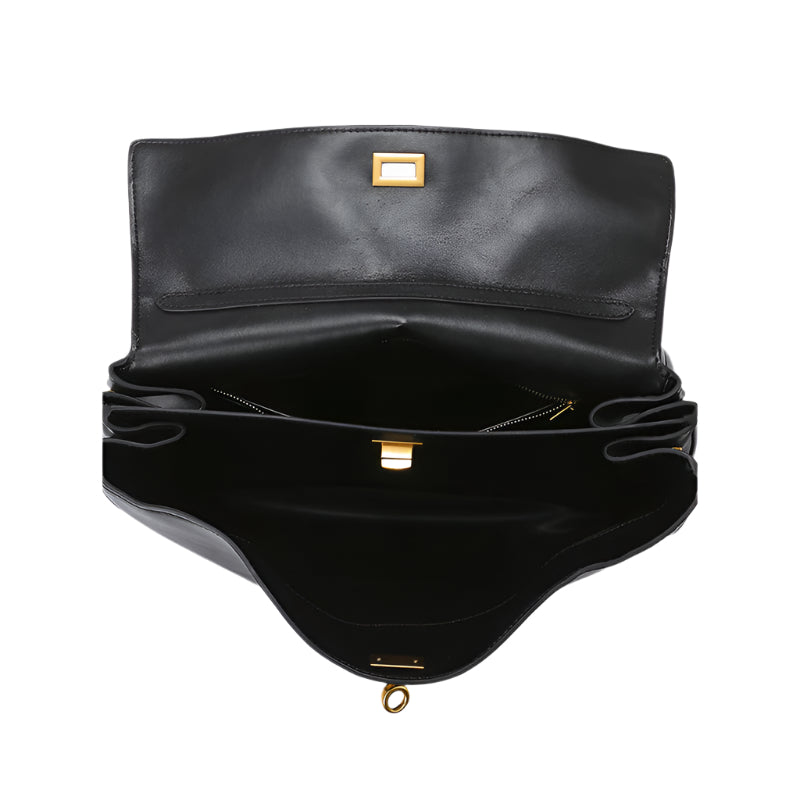 Elosung Elegant Black Leather Handbag With Gold Accents Versatile Shoulder And Carry Women's Bags & Handbags