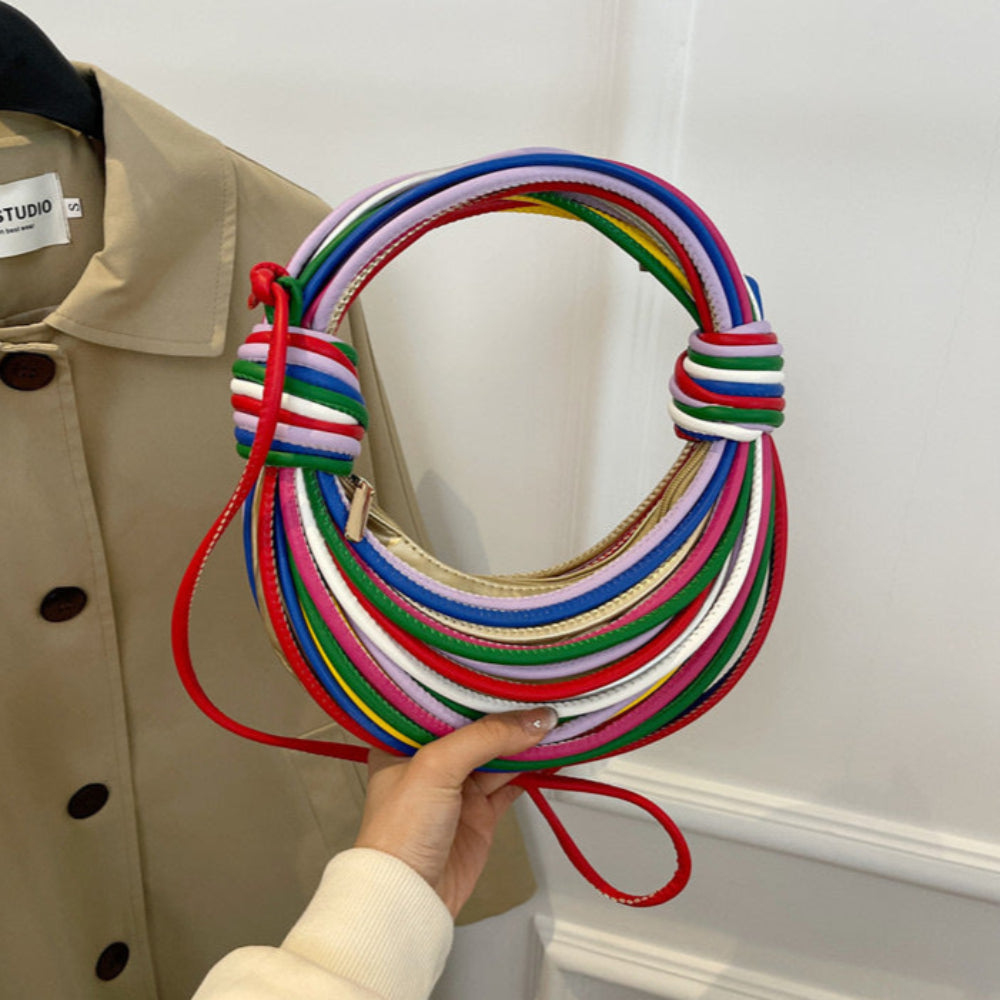 Fashionable Candy Color Handbag Crossbody Women's Woven Bag With Unique Line Design