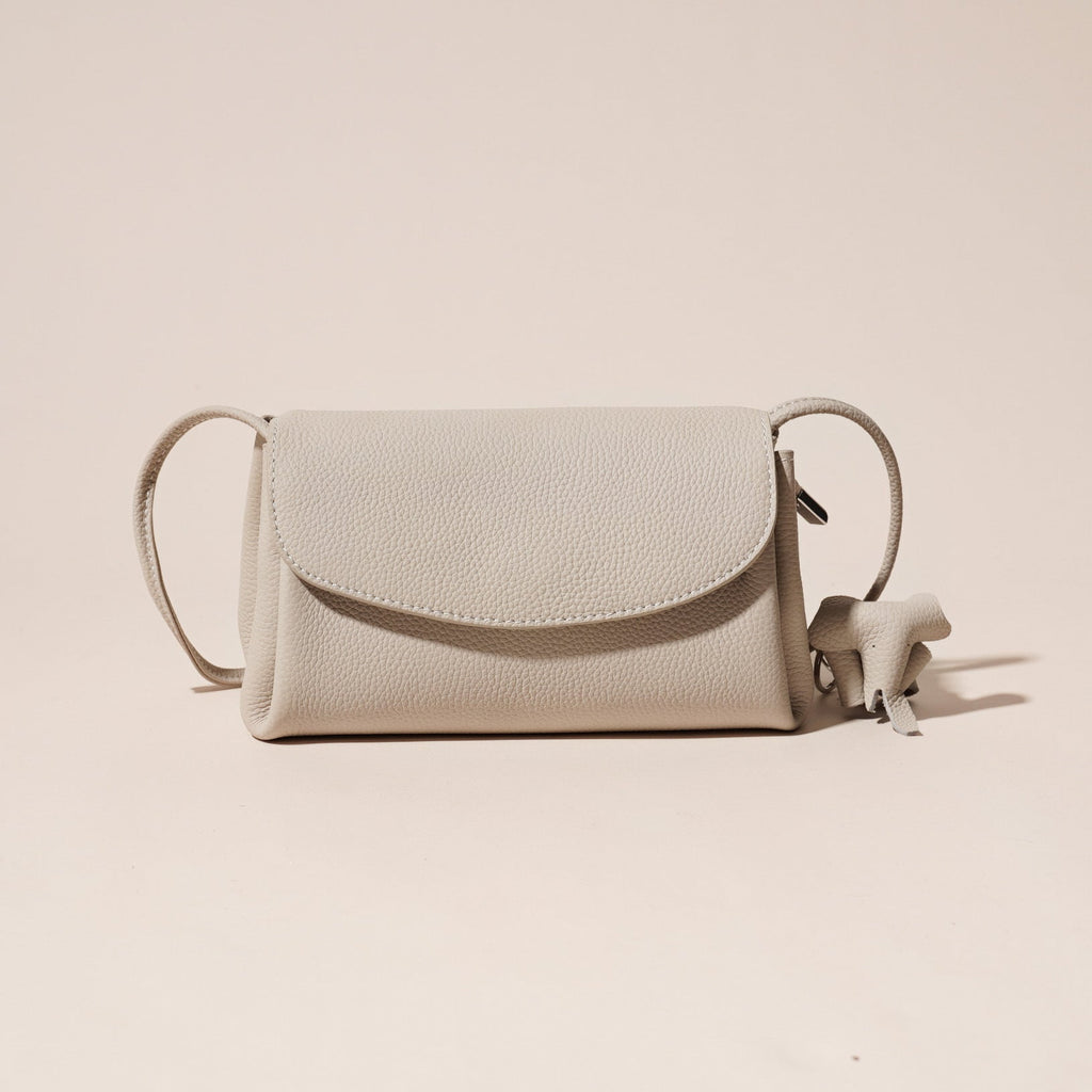 Genuine Leather Flap Crossbody Bag With Elephant Charm – Compact Stylish Shoulder Purse (White)