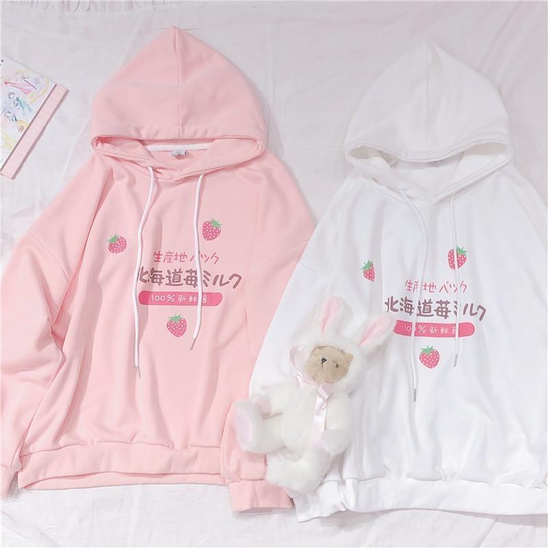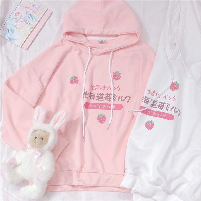 This AdorableStrawberry Japanese Inspired HoodieIsMade Of Soft Material And In The Sweetest Pastel Shade Of Pink Or Pink! Super !