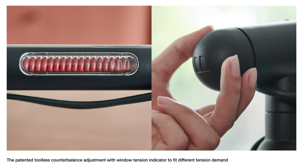 - Counterbalance Adjustment: Patented tension system with visual indicator