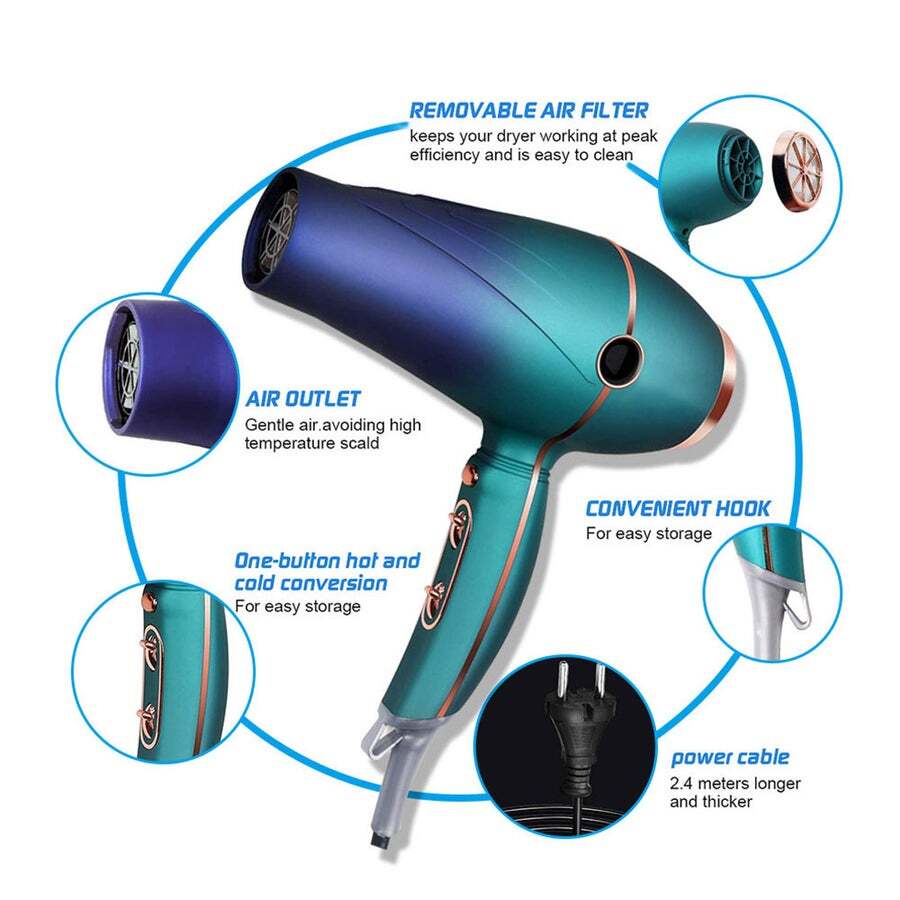 • Ultra Powerful Blow Dryer: Contains a salon-quality 2000W motor with negative ions generator and high-speed turbo fan for fast drying.