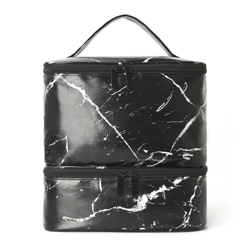 Black Marble Double Layer Pu Nail Polish Storage Case With High Capacity For Essential Oils And Lamp Portable & Adjustable Makeup Bags & Cases