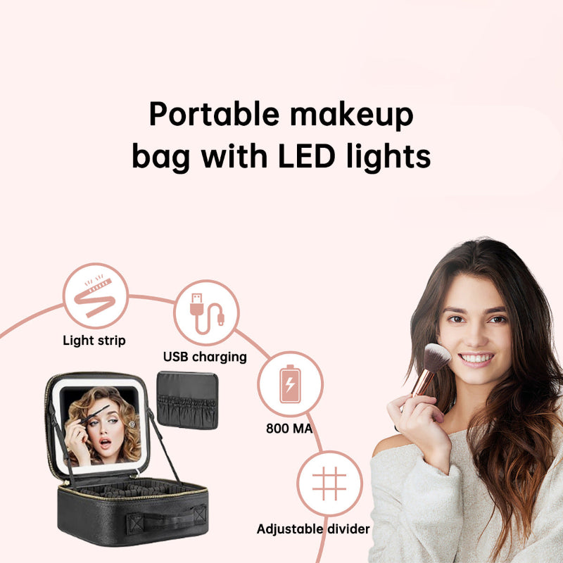 Light Up Box Vanity Organizer Makeup Bag Mirror With Led Light