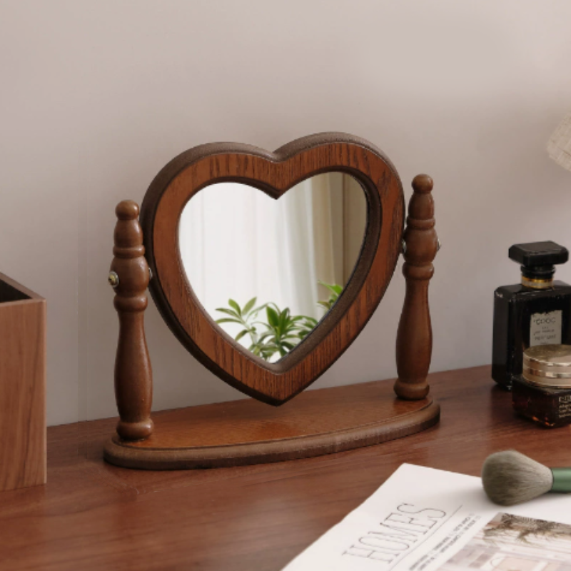 Love Shaped Mirror Cordate Wooden Tabletop Vanity Elegant Design Makeup Mirrors