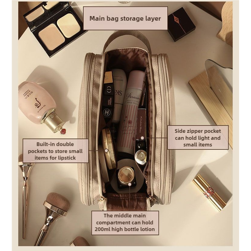 Multi-Function Makeup Bag - Large Capacity Travel-Friendly Double-Zip Cosmetic Organizer